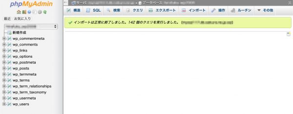 「インポートは正常に終了しました。〜」と表示されればOK。